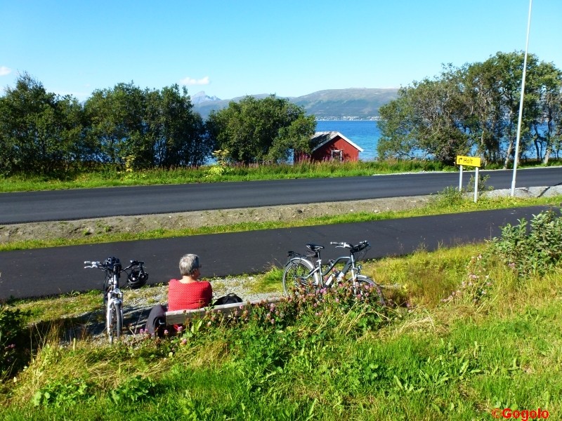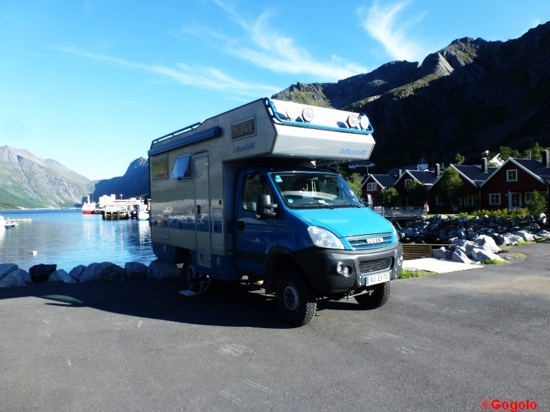 In der Nähe von Alta sind wir einen im "Schulz" genannten freien Waldparkplatz angefahren. Er hat diesen als "Märchenwald" bezeichnet... Ja, der genannte Platz ist ein echtes Märchen, denn die Zufahrt durch den Wald führt wie beschrieben durch Pfützen, Schlaglöcher und über Bodenwellen. Nichts für Weissware-Fahrzeuge, selbst beim Allrad-Gogolobil brauchte ich die Untersetzung. Und die beschriebenen "herrlichen Waldwiesen" sind nur eine kleine Lichtung mit viel Sammelholz. Uns hat es überhaupt nicht gefallen. Daher den gleichen Weg wieder zurück und in Alta den CP Alta Strand angefahren, wo wir jetzt stehen. Zu den Aussagen und zur Aktualität des Womo-Reisführers Nord-Norwegen von Schulz nehme ich in einem meiner nächsten Berichte gesondert (kritisch) Stellung! Zunächst nur soviel: wir waren meistens gut beraten unsere Übernachtungsplätze selbst zu suchen... Habe die Ehre Gogolo Hallo Gogolo, meine Frage hatte einen Grund gehabt...: Wir haben schon mehrmals vor der Kirche auf dem grossen Platz übernachtet. Das ist am nördlichen Ortsausgang hinter der Tankstellenkreuzung links der Kirkeveien, nicht zu verpassen: --> Link Wünsche angenehmen Aufenthalt und schöne Weiterfahrt. PS: Die Felszeichnungen sind Euch ja sicherlich ein Begriff... :) Danke, Berny, für den Tipp, aber wir stehen schon auf dem CP. Vielleicht kann aber jemand anders diesen Tipp gut brauchen. Habe die Ehre Gogolo Danke für den Reisebericht mit ganz tollen Bildern. Ich konnte mich super in Eure Tour reinversetzen und bekomme schon wieder Fernweh . : Geniesst die Zeit in dem traumhaften Land. Vielen Dank für die schönen Fotos und den Bericht! Wir sind gerade dabei unsere Tour für nächstes Jahr zu planen, die Bilder machen es mir nicht leichter bis dahin zu warten... Hammerfest steht auch auf der Liste, der auf jeden Fall zu besuchenden Orte. Beim Nordkapp bin ich mir noch nicht sicher, ob wir widerstehen oder nicht... Viele in den Norden. Herzlichen Glückwunsch nachträglich an Deine bessere Hälfte Sieglinde und zur 1000 Übernachtung :ja: Mal wieder sehr schöne Bilder und Erklärungen. Wir können gar nicht genug davon bekommen :!: :!: :mrgreen: Wir sind von Hammerfest weitergereist – immer Richtung Süden und haben den Ort Alta angefahren. Im Womo-Reiseführer (Nordnorwegen von Schulz) ist bei Alta ein freier Stellplatz (Waldparkplatz) namens „Märchenwald“ beschrieben. Der genannte Platz und insbesondere die Beschreibung im Womo-Führer kam uns vor wie ein echtes Märchen, denn die Zufahrt durch den Wald führt zwar wie beschrieben durch Pfützen, Schlaglöcher und über Bodenwellen, ist aber definitiv nichts für Weissware-Fahrzeuge, selbst beim Allrad-Gogolobil brauchte ich die Untersetzung. Und die beschriebenen "herrlichen Waldwiesen" sind nur eine kleine Lichtung mit viel Sammelholz. Uns hat es überhaupt nicht gefallen. Daher sind wir wieder den gleichen Weg zurück und in Alta den CP Alta Strand angefahren. Was den Womo-Reiseführer Nordnorwegen betrifft, so haben wir schon des öfteren feststellen müssen, dass die Angaben nicht stimmen oder geschönt sind. Insbesondere ist auch zu kritisieren, dass viele Informationen zu einzelnen Orten sehr verstreut in diesem Führer mühselig zu suchen sind. Prädikat deshalb: nur ganz bedingt empfehlenswert. Die schönsten Stellplätze haben wir ohnehin selbst gefunden, was in Nordnorwegen sehr einfach ist, da zahlreich vorhanden. Ferner war zu beobachten, dass Scharen anderer Wohnmobilfahrer offensichtlich das gleiche Büchlein hatten und die dort genannten Plätze anfuhr. Da sind wir dann lieber selbst auf Suche gegangen und haben dabei in der Regel besser abgeschnitten. Wie gesagt, in Alta haben wir dann einen Campingplatz aufgesucht – der erste wieder seit ca. 10 Tagen. Und es hat uns überhaupt nicht gefallen. Zum einen waren wir überrascht, wie teuer die Plätze in Norwegen sind. Und das für einen Service, den wir überhaupt nicht brauchen. Strom brauchen wir aufgrund unserer Solaranlage nicht, Wasser gibt’s an den Tankstellen und für die Entsorgung von Schwarz- und Grauwasser haben die Norweger sehr viele Stationen über das Land verstreut eingerichtet. Es bleibt also nur noch die Dusche auf den Campingplätzen – und selbst die haben wir bequemer, sauberer und schöner im Gogolobil. Gut, manchmal gibt es freies WLAN, aber mit der Europasim-Karte kann ich für lächerliche 3€/Tag auch von überall ins Internet (und darüber hinaus telefonieren und SMS versenden). Wir werden deshalb CPs nur noch dann anfahren, wenn wir irgendwo länger bleiben oder Wäsche gewaschen werden muss. 205km nach Alta haben wir in Djupvik am Lyngenfjord wieder einen superschönen freien Platz an einer kleinen Raststelle gefunden. Abseits der Hauptstraße und mit einer tollen Aussicht auf den Fjord und die diesen umgebenden eindrucksvollen Berge mit Gletscher bis zum Meer. Ringsum sind abgeerntete Moltebeerenfelder, leider sind wir wohl zu spät im Jahr dort, denn reiche Beute wäre sicher gewesen. Unterwegs haben wir noch „Törr Kjött“ (getrocknetes Rentierfleisch) eingekauft. Geschmack: „Na ja“. Blick vom freien Stellplatz auf den Lyngenfjord: ![]() Entlang des Kafjorden und des Storfjorden sowie des Balsfjorden sind wir nach Tromsö gefahren. Landschaftlich bei gutem, sonnigen Wetter sehr schön und abwechslungsreich mit vielen tollen Aussichtspunkten. ![]() ![]() ![]() In Tromsö war es dann wieder soweit: wir fuhren einen Campingplatz an, denn Wäsche musste gewaschen werden und Gogoline möchte auch noch zum Friseur gehen. Außerdem werden wir mit den Rädern ein paar Ausflüge machen und uns auch die Stadt genauer ansehen. Der CP kostet 39€/Nacht incl. Strom aber ohne WLAN. Dafür würden nocheinmal 5€/Tag fällig werden. Auch die Nutzung der Waschmaschine und des Trockners schlugen mit 13€ zu Buche. Diese Preise sind aber in Norwegen so üblich. Zunächst war Putztag. Als dieses beendet war machten wir einen Spaziergang zur imp