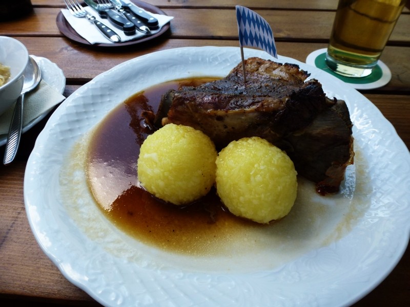 Am nächsten Tag fahren wir schon früh los, denn es verspricht wieder ein heißer Tag zu werden. Die Temperaturen hatten am Vortag schon über 30°. Wir fahren in den Ort und in die nähere Umgebung. In Mitterteich schauen wir kurz bei der Brauereigaststätte hinein, ob es dort „Schäuferle“ gibt – eine echte Spezialität aus der Oberpfalz und Franken. Und tatsächlich werden wir fündig und reservieren uns für den Abend zwei Portionen. In der näheren Umgebung sind wunderschöne Karpfenteiche angelegt und wir machen dort eine kleine Rast bevor wir die 14% Steigung zum Stellplatz in Angriff nehmen. Mit der elektrischen Unterstützung ist das kein Problem – Bewährungsprobe bestanden. Am Abend dann nochmals in den Ort hinunter zum Brauereiwirt und im Freien sitzend können wir die Schäuferle so richtig genießen. Dazu das Hausbier, einfach köstlich! Die Reise beginnt schon sehr gut.