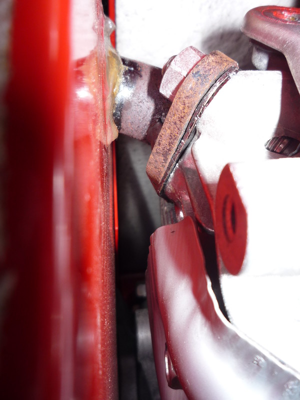 Nachdem ich die Schrauben gelöst hatte, konnte ich jedoch das rote Teil nicht abnehmen.