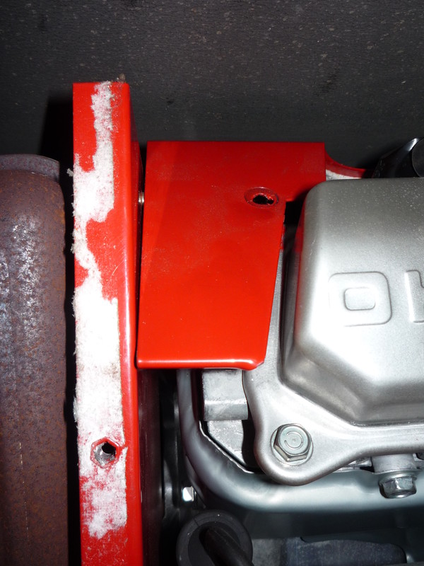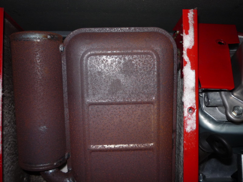 Der Schalldämpfer, der zu tauschen ist, ist wohl hinter einem rotem Blech versteckt.