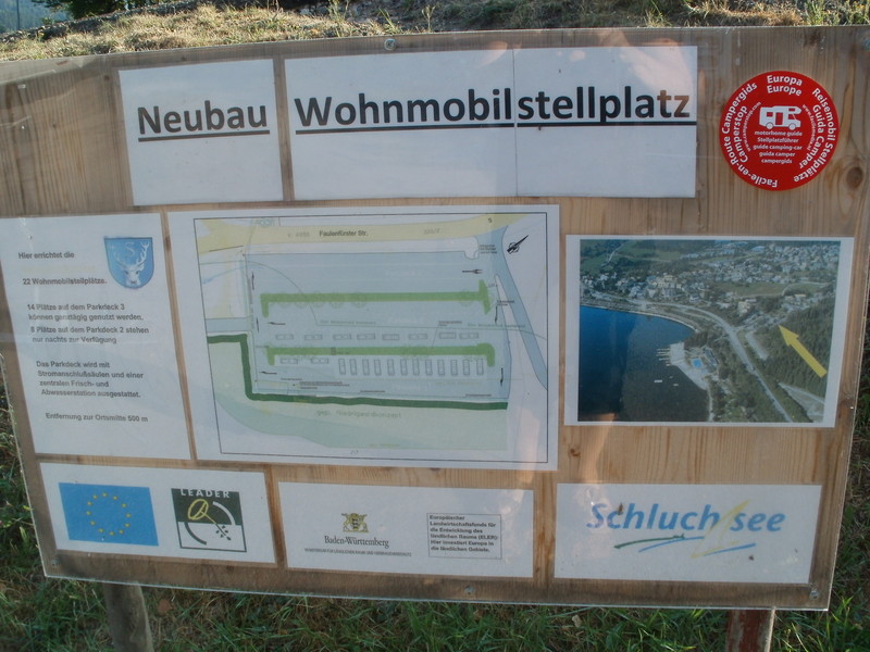 Art des Platzes: Stellplatz Name des Platzes: Wohnmobile am Schluchsee Adresse: Deutschland, 79859 Schluchsee, Faulenfürsterstr. 18 Latitude: 47.81561 Longitude: 8.18131 V/E: Ja Stellplatz eingetragen von: raribay --> Link Link zum Zielpunkt: --> Link ![]() hier 2 Bilder vom SP. Die V/E war bei unseren Besuch im Juni 2013 noch nicht fertiggestellt. ![]() ![]() Hallo, wir haben am 04.07.2013 dort gestanden. Laut aufgestelltem Lageplan ist der Platz für 22 Wohnmobile gedacht. Die V+E Einheit ist an der Stelle wie oben im Bild gezeigt jetzt fertig und in Betrieb. Es stehen Stromsäulen und Abfalleimer zur Verfügung. Der Stellplatz liegt hervorragend um Ausflüge rund um den Schluchsee zu machen. Die Nacht dort war ruhig. Peter Letzte Nacht sind wir der Hitze entflohen und waren auf diesem neuen Stellplatz. Zur Zeit gibt es einige Ungereimtheiten dort !!! Die obere Etage ist der offizielle Stellplatz , 8 € für 24 h . Viele Stromsäulen und V/E vorhanden . Die nächst tiefere Etage wird einseitig zum (kostenfreien ) Nachtparken für Womos. Die Bergseite kann nachts längs beparkt werden , auch hier gibts Stromsäulen ! Diese Wochenende war auch diese Etage komplett tags belegt . zum Teil allerdings längs beparkt . Laut dem sehr netten Vollzugsbeamten werden jeden Tag die Schilder erwartet : Dann ist Schluss mit tags längsparken. Momentan geht noch alles . Er sagte jedoch , auf jedem Parkplatz kann ein Wohnmobil parken , solange es nicht ausdrücklich verboten ist (wie zum Beispiel am Bahnhof) . Nur innerhalb der Linien und dies heisst quer unterhalb der oberen Stellplatzetage. Sonst ist der SP : ruhig , geteert , direkt an Ort , direkt am See , direkt am Strandbad Aqua fun mit toller Mega-Rutsche , direkt an kleinem öffentlichen Strand ( Hunde) , am Bahnhof ( Verbindung Seebuck -Freiburg) Uferweg , Wanderweg und Nordic walking Strecken . Info : ![]() Parkstellungen : ![]() Kassenautomat (nur Bargeld!) : ![]() Stromkasten : ![]() Strom kostet nach Zeit 1 € : ![]() tolle V/E : ![]() Nur Frischwasser : ![]() tolle Kassettenentsorgung mit Wasserschlauch : ![]() Obere Etage : ![]() öffentlicher Strand : ![]() öffentlicher Strand : ![]() Blick vom Bäcker im Ort : ![]() waren jetzt Anfang Juli auf unserer Schwarzwald-Alpen-Tour dort. Der Platz ist durch die vorbeiführende und gut, auch mit trucks, befahrene Bundesstrasse nicht gerade leise. Wenn gut belegt, dann steht man sehr eng. Die Entsorgung ist klasse. Nur sollte der vorh. Schlauch zum Kassetten-Spülen etwas länger sein, damit sparsame Zeitgenossen besser ihren Wassertopf kostenlos auffüllen können :oops: (mehrfach beobachtet in den 16 Stunden unseres Aufenthaltes) |