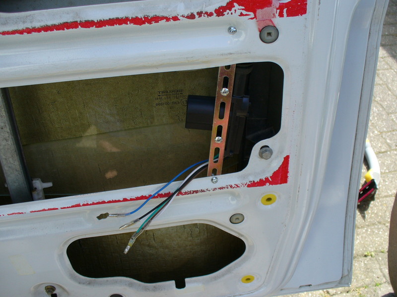 Zuerst habe ich einen der 2 Masterschließmotore eingebaut. Durch die Löcher im Innenblech der Tür ergibt sich eine gute Einbauposition.