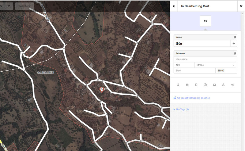 Du hast recht. Open Street Map ist ja ein Gemeinschaftsprojekt wie z.B. Wikipedia: Jeder kann mitmachen, und wieviel er mitmacht, bleibt jedem übrlassen. Es gibt immer nur soviel Infos, wie der jeweilige Aktivist eingegeben hat. Und eine OSM-Navigations-Soft zeigt auch nur die Infos an, die a.) vorhanden ist b.) der Karten-Filter vorgibt. In der Editoransicht von Patras sieht man, das jemand den Städtenamen schon in viele Sprachen eingegeben hat ![]() In einem kleinen Dorf daneben hat man eben nur das nötigste eingegeben ![]() Bei anderen Städten kann es sein, das der Freizeit-Programmierer andere Sprachen zwar eingegeben, aber nicht als mögliche Systemsprachen markiert hat. Ich hatte zuerst in der Gegend von Kavala und Thassos geschaut, da ist fast alles mehrsprachig. In fast 10 Jahren sind in Deutschland zwar mittlerweile schon mehr Verkehrswege erfasst als bei den kommerziellen Anbietern Navteq und Teleatlas, dafür klappt das Navigieren zu einer Hausnummer oft noch nicht. Das ist eben der "Nachteil" von kostenlosem Kartenmaterial, dafür gibt es viele gute "Spezialkarten". |