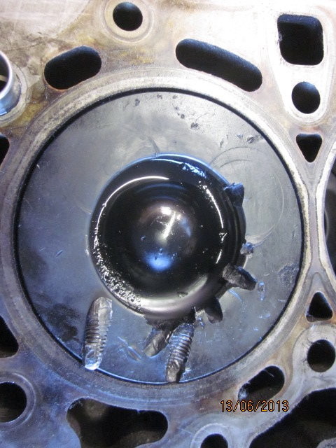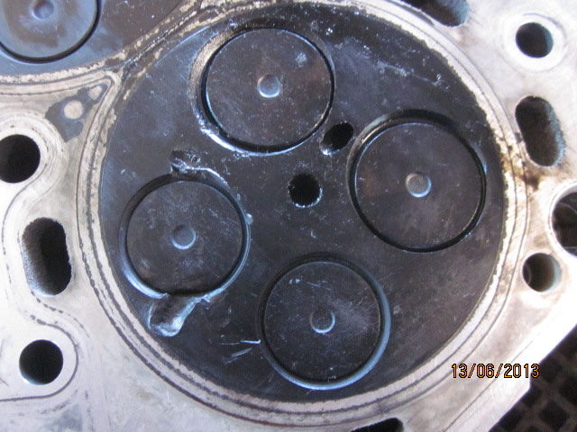 Zum Bild: Man siet das ein Enlassventil krumm ist, dieses wird das Ventil sein an dem die Schraube vorbei ist. Weiter erkennt man Abdrücke vom selben Ventil am Kolbenboden. Dieses Ventil müsste ausgebaut und untersucht werden.