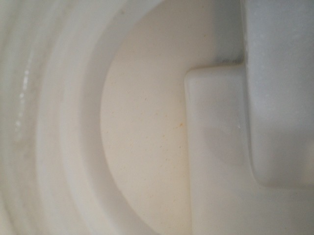Im Tank sieht es so aus als ob kleine gelbliche Stücke drin sind.
