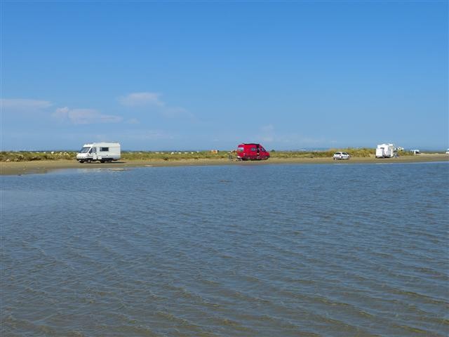 Nach 3 Wochen in Norditalien fahren wir von San Remo über die Küstenautobahn nach Westen und wollen die erste Nacht in Frankreich auf dem Wohnmobilstellplatz in Carro verbringen, den wir bei unserer Reise im Spätherbst 2004 ganz allein für uns hatten. Leider sieht das heute ganz anders aus, der Stellplatz ist schon mittags sehr gut gefüllt. Wir wenden deshalb sofort und fahren zum "Wildcamperstrand", dem Plage de Piémanson.