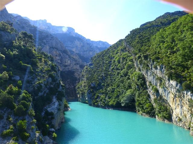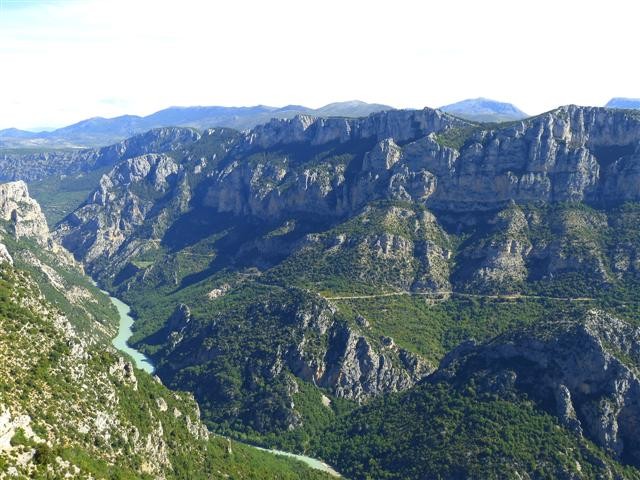 Über die Einmündung des Verdon in den Lac de Ste. Croix geht es hoch hinauf auf der Südseite des Canyons, von wo man tief hinein sehen kann in eine der größten Schluchten Europas.