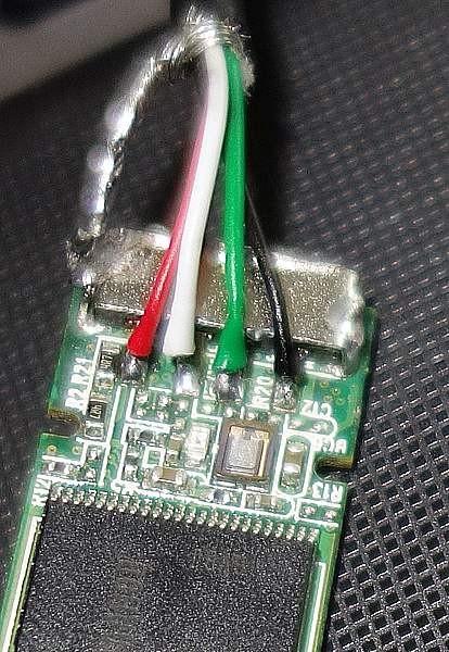 Ich habe also erst mal Stick zerlegt und erst mal ein richtiges USB-Kabel angelötet.