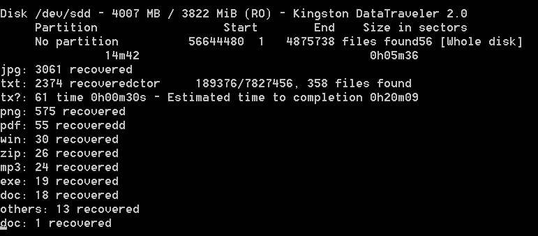 Doch da gibt es eine tolle Linux-SW PhotoRec (übrigens auch für Windows im Commandlinemode verfügbar).