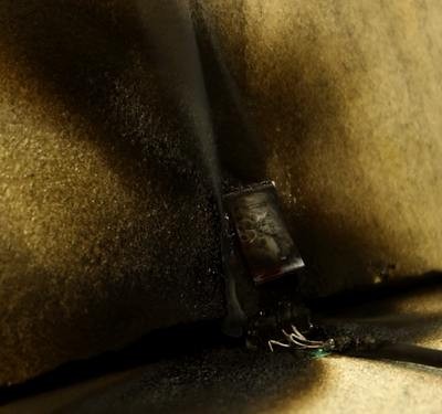 Deutlich zu erkennen, ein glatter Abriss des Steckers, samt Metallumhüllung. Da müssen wirklich hohe Hebelkräfte auf die Platine gewirkt haben. Ich fürchte schlimmes, hoffe aber das beste, denn es ist eine mehrschichtige Platine. D.h., sie besteht aus 4-5 Schichten mit Leiterbahnen dazwischen. Wenn da eine innen gebrochen ist, wird es richtig ekelig.