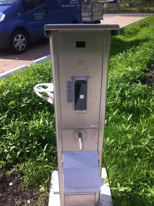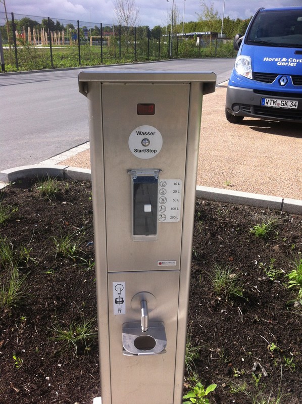 Aurich hat wieder einen Stellplatz :zustimm: Direkt am neu gebauten Wohlfühlschwimmbad De Baalje--> Link sind 20 schöne neue Wohnmobilplätze errichtet worden. Der Stellplatz liegt mitten in der Stadt, in der Nähe des Hafens (ca. 200-300 Meter - mit Tretboot, Kanu und Fahrradverleih). Direkt am Wohnmobilstellplatz grenzt der Parkplatz des Schwimmbades. Abends vermutlich ist es hier vermutlich ruhig. Bäcker, Restaurants, Supermarkt, Innenstadt usw. sind im Umkreis von 500-800 Metern zu erreichen. Soweit ich es sehen konnte, sollten mind. 16 Stromanschlüsse vorhanden sein. Am Hafen wird zur Zeit von der Stadt ein Luxus-Sanitärgebäude (350.000,- Euro !) gebaut. Toiletten und Duschen für die "Bootjefahrer", ob diese dann von den Wohnmobilfahrern mitbenutzt werden können, ist noch nicht bekannt. Die Anfahrt ist über die Tannenbergstr., 26603 Aurich (z.Zeit noch kein Schild - Richtung Parkplatz "De Baalje" folgen). Eine Schranke ist vorhanden, allerdings ist die zur Zeit noch offen. Preise für den Stellplatz sind auch noch nicht zu finden. Hier noch ein paar Fotos: ![]() Gebäude im Hintergrund ist das Finanzamt 8) ![]() ![]() ![]() ![]() ![]() Der leichteste Weg zum Stellplatz ist der Beschilderung Finanzamt/Hafen folgen. Direkt zum Hafen abbiegen Gleich am Finanzamt sind schon die Hinweisschilder zum Freizeitbad "De Baalje" Hinter dem Finanzamt die Einfahrt zum Stellplatz Die elektronische Schranke Der neueste Hinweis Der gesamte Parkplatz hinter dem Freizeitbad befindet sich noch in der Bauphase. Einiges kann sich noch ändern. Durch die Bauarbeiten entsteht tagsüber wohl etwas Lärm. Großzügig angelegter Stellplatz. Kosten betragen 9€, zu entrichten im Bad. Geduscht werden kann für 1€ im Bad. Strom kostet für 1Kw 1€ . gabdir Hi, der Platz hat eine tolle Lage zur Innenstadt Brötchen gibt es um die Ecke und die Sauna bietet alle 14 Tage eine langen Abend mit Buffet am Freitag und Samstag ist Wochenmarkt. Klaus Kosten übernacht nun10Euro, Abreise bis 17 Uhr des Folgetages dafür gibt es 20% Nachlass bei Besuch des Bades Die Entsorgung des WCs kostet 1Euro, Frischwasser ebenso. Für Grauwasser gibt es einen Gulli |