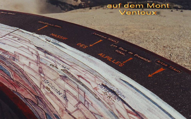 Vom Mont Ventoux habe ich 2 Bilder und von der Ortseinfahrt Ste. Colombe mal ein Bild eingestellt. Hoffentlich wird die Sicht auf dem Berg besser sein als auf dem Foto. Es sind Bilder aus dem Jahre 1997.