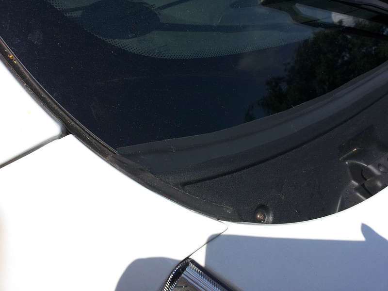 Die wegstehende Dichtung in der Mitte der Windschutzscheibe wurde verklebt. Eine Wasserauffangschale(Fiat-Ersatzteil) wurde eingebaut, eine Motorabdeckung angebracht, sowie links und rechts der Wasserabläufe erweitert und mittels Schlauch wird das stehende Wasser unter das Wohnmobil geleitet. So sollte kein Wasser mehr in den Motorraum von oben eindringen.