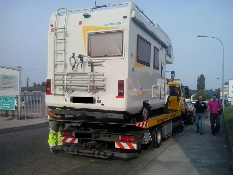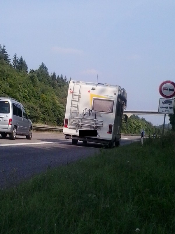 Reifenplatzer hinten. Lenker fest gehalten, vom Gas weg, Warnblinke rein und auf den Standstreifen. Praktischer weise war Polizei gleich hinter mir und hat die Autos aufgehalten und die Sachen die mir aus der Bank raus gefallen sind aufgesammelt Stand ganz schön unter Schock und war nur am zittern. Polizist mich aber gelobt wie gut ich das gemacht habe :) ADAC kam, Womo drauf, nach Koblenz rein, Taxi zum Leihwagen und halb eins war ich dann heilfroh Zuhause. Ja, Löcher im Boden, Schürze hat Löcher. Bin ich mal gespannt. Vermute mal das es ein wirtschaftlicher Totalschaden ist :cry: :cry: :cry: :cry: :cry: :cry: :cry: und habe noch nicht wirklich einen Plan wie es dann weiter geht.