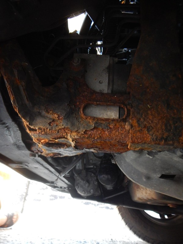 Das Teil sitzt sehr tief im Motorraum auf der linken Seite. Der Träger sieht nicht nur rostig aus, er besteht auch zu 90% aus Rost.... den sollte ich mal ersetzen.