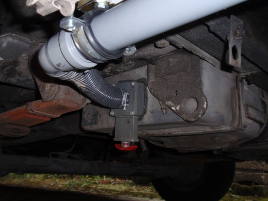Moin zusammen, nachdem ich in letzter Zeit immer wieder neidisch bei neueren WOMOs Abwasser-Lösungen gesehen haben, bei denen ein Rohr vom Grauwassertank unter dem WOMO Boden zur Fahrzeugseite geführt wird, so dass man mehr oder weniger bequem von dort entleeren kann, mehrt sich mein Wunsch nach "will ich auch". Die Frage ist, wie sich das am besten bewerkstelligen lässt. Aktuell haben wir am Tank einen Schieber, vor dem ein Stück (ca. 70cm lang) Flexrohr (76mm?) befestigt ist. Dieses Flexrohr wird zur Fahrzeugseite geführt und ist dort in so eine komische Plastikschelle gelegt, damit es während der Fahrt nicht auf der Straße schleift. Vorne an dem Flexrohr ist nun so ein Entleerungshahn ... Etwas ungünstig an der ganzen Sache ist, dass ich trotzdem immer bis zur Mitte unter den Wagen kriechen muss, um den Schieber zu öffnen. Weiterhin würde ich gerne an den Flexschlauch, oder besser diesen Hahn einen Schlauch anschließen können, um das Wasser gezielt ablassen zu können. Man kann ja leider nicht immer mit dem WOMO direkt über den Abfluss fahren ... Habe nun inzwischen einige Camping-Online-Shops durchforstet, aber ich finde irgendwie nicht das Richtige ... Mir schwebt eigentlich etwas in dieser Art vor: - Starres Rohr vom Tank/Schieber zur Wagenseite - Dort Winkel bzw. kleines Rohr nach unten mit Absperrhahn und ggf. der Möglichkeit einen Schlauch ankoppeln zu können. Habt ihr vielleicht Tipps oder hilfreiche Links? Und noch die ganz allgemeine Frage: wie befestige ich so ein starres Rohr am besten? Von unten in den Boden schrauben, oder eher die Kabelbinder-Variante an einem der Querträger? Beste Christian Als letztes Stück vom Fahrzeug zum Boden empfieht sich ein zerschnittener Fahrradschlauch, den kann man während der Fahrt dann hochbinden. Gib mal bei der Suche " Schlauch " " Grauwasser " ein > jede Menge Lesestoff Hallo Christian, ich hab das bei mir auch umgebaut. Ohne Masse ist natürlich schwer konkrete Angaben zu machen. Ich hab mir im Baumarkt die 60er (grauen) Abwasserrohre und diverse Winkel besorgt. Damit ich die Halterungen (Lochblechstreifen verzinkt) nicht in den Unterboden schrauben muss, habe ich zunächst Distanzhölzer (Hartholz) mit Sikaflex angepappt. Rohre verlegt, so dass der Abfluss nahe am Hinterrad ist, am Ende ein Reduzierungsstück mit Kugelhahn und 90Grad-Winkel-Röhrchen befestigt. Anschließend das ganze mit schwarzem Unterbodenschutz (mehr für die Optik)leicht übergesprüht und ferig. Das Schiebergestänge kannst du entweder verlängern oder vernachlässigen wenn du am Ende die Absperrung hast. MIt kabelbindern kannst du fixieren, dauerhaft ist das nicht. Durch Vibrationen, Kälte/Wärme ermüden die Dinger recht schnell und reissen ab (hab ich hinter mir). jürgen Hallo Christian, bei meinem TEC ist der isolierte Grauwassertank mit normalem, ca.250 mm langem HT -Rohr ( 50er, die graue Version) versehen, daran schließt sich der Schieber an. Dann ein Bogen, darauf ein "flexibles" Rohr, ähnlich Spiralschlauch, von ca. 1,0 m Länge. Damit wird auch ein 90°-Bogen realisiert, weiter geht es wiederum mit 50er HT Rohr und verklebtem Rohrbogen, der von 50 auf 40 mm abgesetzt ist. Dieses Rohr ist am Fahrzeugheck mit so Rohrklemmen fixiert. Damit kann ich schon einmal locker über die Entsorgung rangieren. Den Ausgleich nach rechts oder links macht das beschrieben "flexible Rohr gut mit. Wenn ich aber in eine Entsorgung mit hochliegendem Abfluss entsorgen muss, hab ich mir in der Garage ein 1,5 m langes 50er HT-Rohr, einen flexiblen 50er Schlauch, etwa 250 mm lang und daran wiederum ein Reduzierinkel mit 40 mm Innendurchgang gelagert. Um mir das mechanische Öffnen des Schiebers in Zukunft zu ersparen, werde ich über kurz oder lang dies hier --> Link beschaffen. Dann kann ich über die Entsorgung fahren, mit einfachem Schalter den Abfluss freigeben. Zu dem Thema gab es hier auch mal einen Tröt, in dem einige Forianer sogar ihre Kameraüberwachung des Ausflussstutzen dargestellt hatten. Einfach mal suchen. Genau den Link meinte ich, besonders die Beschreibung, die von Walter 7149 bebildert eingestellt wurde. Da kann man alles für sein Womo abgewandelt nachbauen.