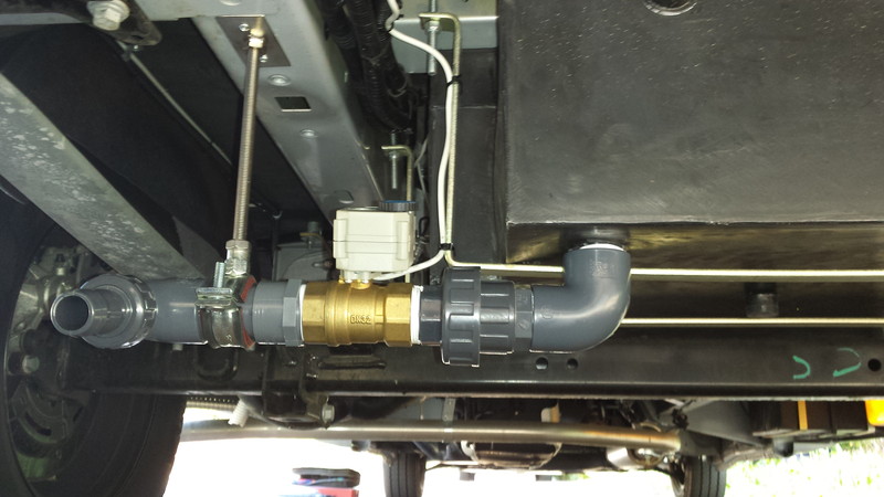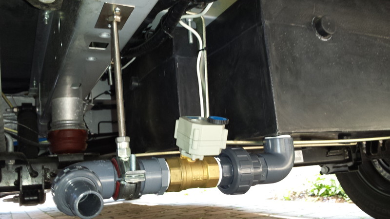 Hi Michl, das ist der Entwässerungshahn für den Frischwassertank. Der ist aber an das neue Abwasserrohr nicht angeschlossen, das täuscht auf dem Bild nur. Hatte da zwar kurzzeitig überlegt, aber dann doch Abstand davon genommen, nicht das von dem ganzen Schmodder beim Grauwasser-Ablassen nachher noch was nach oben kriecht und uns das Frischwasser "würzt" :roll: Schön'n Christian Hallo, ich hatte mir vorletztes Jahr in einem anderem Forum bei einer Sammelbestellung ein 12V Kugel-Ventil bestellt. Dafür habe ich inkl. Versand 52€ bezahlt. Zuerst hatte ich das Ventil hinter meinem Schieberventil eingesetzt und den Schieber einfach offen gelassen. Inzwischen habe ich den manuellen Schieber ganz heraus geworfen. Ich habe mir Markierungen am Radlauf und am Aufbau gemacht - So kann ich wie ünber Kimme und Korn im Spiegel den Ablass-Schacht anfahren und vom Fahrersitz aus das Ventil öffnen. Ich würde es immer wieder verbauen. MfG Michael Heute habe ich mir auch ein elektrisches Abwasserventil eingebaut Da das Wetter heute sehr schön war, habe ich mich spontan dazu entschieden in mein neues Womo selbst ein elektrisches Abwasserventil einzubauen. Ich habe mich für ein VCR01-53 DN32 entschieden. Da ich eine zweiten Anschluss an meinem Tank habe, brauchte ich den Schieber nicht zu demontieren. Ich habe Ihn einfach dran gelassen. Mit einem Schälbohrer habe ich den Ablauf geöffnet. Zwei Bögen eine Verschraubung und eine zusätzliche Halterung und schon war es erledigt. Die Leitung hatte ich bei der Bestellung des Womos gleich mitgeordert, so das ich nur noch die Verdrahtung am Ventil und an den beiden Schalter anschließen musste. Gebraucht habe ich dafür ca. 2,5 Std. Habe hier noch einige Bilder angeheftet. Falco96 ät Falco: Ich sehe keine Bilder. Ich lade die Bilder immer hoch, aber nichts wird angezeigt der Add Blocker ist deaktiviert. Kann mir jemand einen Tipp geben? , Falco Ich hoffe das man sie nun sehen kann ![]() ![]() ![]() , Falco Saubere Arbeit! :ja: Sieht richtig gut aus - Respekt ! Eine Frage stellt sich mir aber dennoch. Wie ist das mit der Frostsicherheit ? Das Grauwasser steht doch bis zum Ventil (Messingteil). Ich würde das Ablaßventil und die Leitung Richtung Tank isolieren. Die Tankheizung dürfte dieses Ende nicht mit erwärmen. Bei der entsprechender Temperatur hat sich schnell ein Eispfropfen gebildet. Im ungünstigsten Fall zerfriert dir die Leitung und das Ventil. Oder einfach ein Heizkabel drumwickeln, Strom is ja in der Nähe :) Im Winter bleibts offen und am CP kommt ein Eimer drunter aber hoffentlich kein holländischer Eimer :eek: Unsere Lösung: ![]() Das war früher, aussteigen, Klappe auf, Hahn auf und dann warten... ![]() Das neue elektisch betriebene Abwasserventil, für mehr Bequemlichkeit bei der Entsorgung. ![]() Kamera für das Abwasserventil, um das Fahrzeug genau über dem Abfluß zu positionieren Inspiriert von XGO Fahrer und Forenmitglied Falco (siehe oben) habe ich auch einen elektrischen Ventil an meinen Rimor XGO Dynamic 39 installiert. Sieht dann so aus: und und Stromkabel muss ich noch besser befästigen, aber dazu war es einfach zu Kalt (0 Grad und Schneetreiben). wenn man jetzt noch das letzte senkrechte Rohrstück mit einem Schlauch bis knapp über den Boden verlängert, spritzt es nicht mehr (vor allem bei Fäkaltanks) grüße klaus
