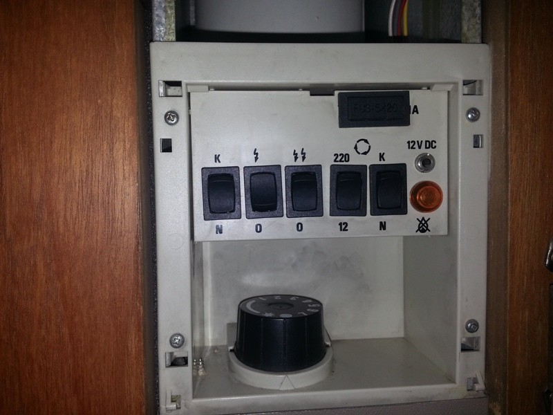 Schalter 5 (K): Konstantstellung für 12 V und 230 V Umwälzpumpe. Die Pumpe ist ständig in Betrieb, die Raumtemperatur wird mit dem Kesselthermostat geregelt, da die Systemtemperatur des Kessels einstellbar ist. Die Konstant-Stellung ist z. B. angebracht, wenn sich mehrere Personen im Wagen befinden. Wenn dann jemand nahe am Raumthermostat sitzt, kann so der Pumpenbetrieb abgebrochen werden, und es kühlt im Fußboden- und Fensterbereich ab. Dem wird durch Konstantbetrieb der Umwälzpumpe vorgebeugt.