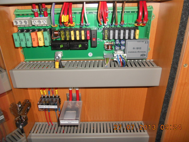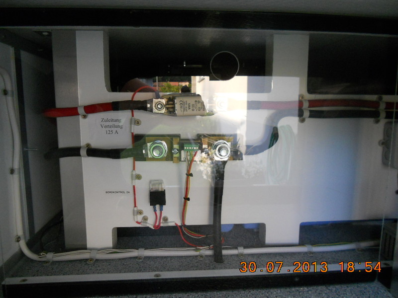 Ja klar, könnte man so machen, aber ich persönlich würde die Phoenix Installation so nicht umgehen (auch wegen des Aufwandes), sondern eben direkt an die Batterie gehen. Oder einen Strombegrenzer einbauen. Meist liefert die Anlage ja nicht den vollen Strom, und da ist ein extra Panel natürlich von Vorteil. Hausanlagen werden ja (teilweise) auch so ausgelegt, dass der Wechselrichter etwas kleiner ist, er also bei voller Leistung der Panele drosselt. Moin, wenn man sich mal den Schaltplan ansehen würde könnte man erkennen welche Kabelquerschnitte verbaut würden und wie diese 20A Anschlussmöglichkeit verklemmt ist! Grundsätzlich gilt... das solch eine Installation auf die max Nennleistung ausgelegt werden muss, ein Hinweis an die Kabel das sie das ja nicht lange und nicht oft aushalten müssen wenn sie zu klein sind nutzt diesen wenig :mrgreen: Was mich hier stutzig macht ist die Leistungsangabe des Reglers...400WP bei nur 25A...wie schon geschrieben hat meiner bei 420WP 40A Sicherung. Warum sollen da nur 25A zustande kommen bei 400W Solarleistung??? Zum Verständniss, wir sprechen hier von Modulleistung und Ladestrom....nicht von Panelstrom...den kennt hier keiner! Ich gehe von aus, das ist der Anschluß eines Solarreglerabgangs zur Batterie!!! Dann würde die Sicherung nur überlastet, was weitere Folgen nach sich ziehen könnte (falsche Abschaltreihenfolge!!). Oder ist das ein Eingang für ein Solarpanel da interner Solarregler vorh.??? Könnt ihr mal den genauen Typen posten??? Ist das das Steuergerät oder ein interner Lader??? Oder nur ein Anzeigenpanel?? Fotos??? nethunter, die 25A passen schon. Unter Normalbedingungen im WoMo (flach liegendes Panel und in unseren Breiten) wirst Du einen Maximalladestrom von ca. 0,06 A/Wp erreichen können. Ich habe das in diesem Sommer bei meiner Anlage verifizieren können. Die allgemeinen Werte lagen eher noch darunter. Hi, Das flach liegende Panel ist bei senkrechter Sonne optimal ausgerichtet :mrgreen: Aber hast recht. Allerdings komme ich auf 0,068A /Wp bei mir. 0,72 wären Nennleistung. Hallo Jungs, danke für Eure Beiträge, wir haben jetzt 2 x 140W Büttner bestellt, da sollte unsere Sicherung reichen :ja: . Wenn's Euch noch interessiert, so schaut unsere Verteilung aus: ![]() hier ist die Nr. 12 / 20A Sicherung für Solar vorgesehen ![]() das ist im Staukasten nähe Batterie ![]() 2 x Ladeautomaten ![]() Sollte mal noch mehr Solar auf's Dach kommen werden wir direkt über die Batterie gehen, aber vorest wird das wohl reichen :ja: , wurde nach heftigen internen Diskussionen so beschlossen :wink: . ....sieht irgendwie selbst gebastelt aus... 8) Hallo, noch eine kurze technische Beschreibung von Sicherungen: Jede Sicherung hat einen gewissen Auslösestrom. Das kennt man speziell von den Haussicherungen von zu Hause, da steht vor dem Nennstrom ein Buchstabe, der da angibt. So ähnlich ist es auch bei den Autosicherungen, nur hier gibt es keine verschiedene Auslösecharakteristika, d.h. sie lösen typischer Weise bei 1,5 fachen des Nennstromes aus -> bei einer 20A Sicherung ist der Auslösestrom ca.30A. Daraus folgt wieder, dass bei einem Dauerstrom von z.B. 22A es sein kann, dass die Sicherung immer noch ganz bleibt und alles nachgeschaltete das auch so verkraften muss. Tausct man nun die Sicherung gegen eine mit größerem Nennstrom, so kann sich sicher jeder denken, was dann bei einem entsprechenden Strom alles passieren kann (schlimmstenfalls ein Kabelbrand und das Womo steht in Flammen) Bei den Bildern von soletti1 sieht man aber auch recht schon, dass das Solarkabel über einen 6,3m Flachkabelschuh angeschlossen wird und dann über eine Leiterplatte mit Sicherung zum EBL geht. Auf Grund dieser Tatsache, und meinen beruflichen Erfahrungen, denke ich, dass mit den 20A hier schon die Obergrenze des möglichen erreicht ist.