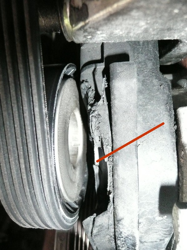 Niemand hielt es in einer VW-Werkstatt im Salzkammergut wo ich den LIMA -Riemen erneuern ließ der Mühe wert mich darüber zu informieren -Schallschutzdeckel drauf 264.- Euro geblecht und fertig. Nach ca. 4000km mußte ich auf die Bühne - zum Glück - da Ölverlust und es wurde das da sichtbar: Natürlich mußte ein neuer drauf und so sah der alte u.a. aus: