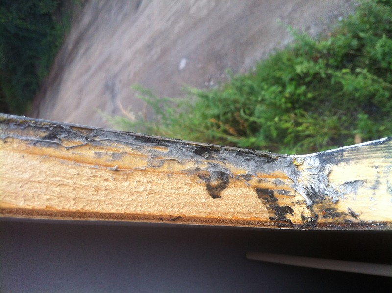 Wie ich das sehe, war darunter zum Glück nur alte Dichtmasse und kein Sikakleber, das hatte ich nämlich mal. Das geht vielleicht grauenhaft weg. War an dem Außenrahmen überhaupt rundum eine Gummidichtung vorhanden?