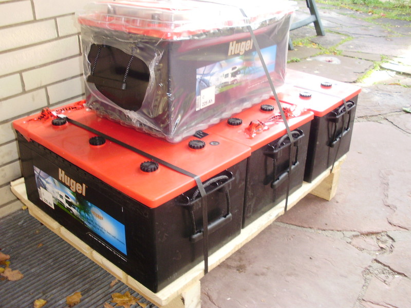 ..eben.. ich schätze rolfblock wollte nur freundlich darauf hinweisen das er und viele aderen mit 0,5AH/WP hinkommen.... Das schätze ich allerdings auch....dies liegt natürlich auch an der eingeschränkten Möglichkeit entsprechend viel AH zu verbauen. Wäre übrigens mal eine Umfrage hier wert...wer kommt mit welchem Verhalten auf 0,25AH/WP, 0,5AH/WP, 0,75 AH/WP oder halt 1AH/WP gut hin hier ? peter Hallöchen Hier mal unsere Anlage 340Wp Poly auf Dach 3x100 Ah Batterien in Box (nur Aufbau) Mindestens 3 Std TV + 2x Smartpfon Laden und mindestens 3 Std Lapt. immer ohne Landstrom juju1305 ich schätze im Sommer bringt mein Solar ca. 30Ah/100Wp und im Winter nix! Meine Zahl 0,87Ah/W, 460Ah und 530Wp erwies sich für mich diesen Juli als ausreichend bei einem Tagesverbrauch von 150Ah, jedenfalls brauchte ich nicht einen Tag Fremdstrom. Da ich meine Akkus max. 50% entlade, wäre ich ohne Sonne rechnerisch nach 36Std. stromlos. :cry: Ohje, Da muss ich aber kleine Brötchen Bächen. Ich baue morgen meine Panels drauf. 380 wh bei 190 ah. Ich rechne aber mit ähnlichem Tages Bedarf wie rolfbock. Tagsüber werde ich den meisten Strom beziehen, Abends bissel licht das wars, nachts läuft dann nur noch der Kühli. Der Kühli zieht im Durchschnitt 3-4ah. Da ich noch einen fest installierten Generator habe glaube ich bei den 190AH Batterie Kapazität bleiben zu können.....oder? Peter