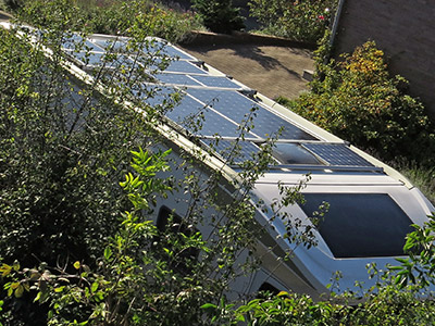 Ganzes Jahr angemeldet, und auch genutzt, Schiffe gucken am Rhein etc. Kurze Wochenendtrips, Wanderziele im Mittelgebirge und Alpen meistens in Mitteleuropa. Aber auch keine elektrische Kaffeemaschine kein Fernseher, daher nie Landstrom nötig. Vielleicht sind die 4 Module überdimensioniert? Haben aber so schön draufgepasst 8) Hallo Schmid, kannst du uns verraten, was beim Aufkleben falsch gemacht wurde? Über die Panels gelaufen? Dicke Kleberbatzen? Wasser in der Anschlussdose? Grüße, Alf Da wurde nichts falschgemacht. Alle Module wurden von einer Fa. die seit Jahren Expeditionsmobile baut montiert. Zeitgleich fiel übrigens nach einem Jahr Betrieb das flexible Modul auf dem Dach eines Freundes aus . Module wurden nicht begangen und hatten beste Bedingungen (Garage) und keine extensive Hitze . Anschlussdose wurde abgedichtet Ich vermute einfach nach kürzester Zeit Microrisse und damit , 0,0 V. Mir reichts endgültig . Jetzt kommen Airlineschienen aufs Dach und ein vernünftiges Modul aus dem profesionellen Bereich. Denn nach 2 maligen Runterreissen vom Dach hat auch das gelitten. B.t.w. meine ersten 2 Solarmodule hab ich 1991 vor einer Saharadurchquerung montiert. (2 x BP solar BP 252 -55 W) . Die Module sind jetzt also mehr als 25 Jahre alt , sitzen im 35 Grad Winkel auf meinem Garagendach und haben noch 90 % der ursprünglicjen Leistung ( gemessen 3,0 A) Grüsse Armin
