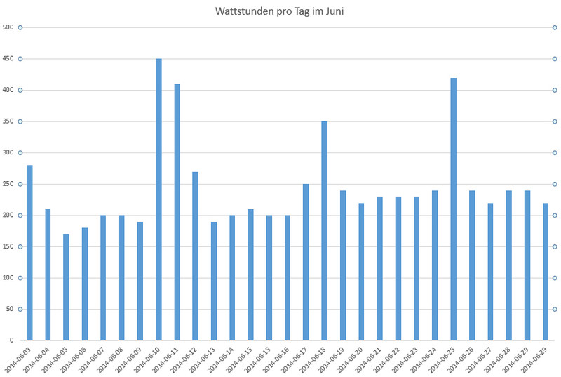 Aber nur ein bisschen :-D Du scheinst im Womo wenig Strom zu verbrauchen und die Batterien werden nur minimal entladen ;-) Wir haben zwar 130Wp (530Wp gesamt) mehr auf dem Dach, aber im Juni lag unser Minimum bei 1500Wh, meist aber um die 2500-3000Wp. Allerdings haben wir auch zwei Kühlkompressoren, Sat und Internet, Kaffee und Staubi ständig am Laufen - die Solarmodule sollen schon was tun für ihr Geld! :mrgreen: