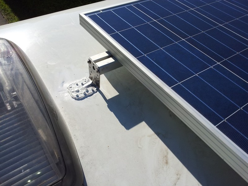Die flexiblen Module sind unsichtbar für die Leute am Boden durch die Verklebung auf dem Dach, damit weckt das WoMo auch (hoffentlich) weniger Begehrlichkeiten bei den Einbrechern.
