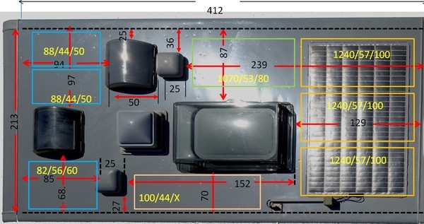 3x100W 1240x570 = 300W 2x080W 1070x530 = 160W (ein mal schon im Bestand) 2x050W 880x440 = 100W 1x060W 820x560 = 060W Summe: 620Watt Summe Zellen: 1592€ inkl. Versand