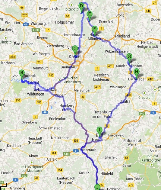 Von Hann. Münden aus kann man sehr schöne Touren an der Weser, Fulda oder Werra machen. Oder ihr fahrt die Werra aufwärts nach Bad Sooden Allendorf bzw. Eschwege. Hier könnt ihr hervorragend Fahrrad fahren bzw. Wandern :!: Endziel könnte Bad Hersfeld sein. Hier mal eine Übersicht des "Rundkurses" Falls Euch die Punkte zusagen kann man ja etwas detaillierter werden was Essen, Trinken und Ausflugstipps betrifft :mrgreen: WIR SIND BEGEISTERT! So viele tolle Tipps!!! Jetzt haben wir die Qual der Wahl :? - vermutlich müssen wir mehr als einmal kommen... Da werden wir auf jeden Fall was finden für eine gute Mischung. Vielen herzlichen Dank allen Insidern bzw. Einheimischen. Franziska Ich dachte ihr habt 8 Wochen Zeit :mrgreen: