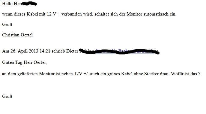 Im Monitor-Kamera-Set gibt es noch einen Draht für den Rückwärtsgang ( ist ja eigendlich so, daß sie nur beim Einlegen des Rückwärtsganges aktiviert wird ), der muß ja auch noch irgendwo hin, damit ich dann ein Dauersignal habe.