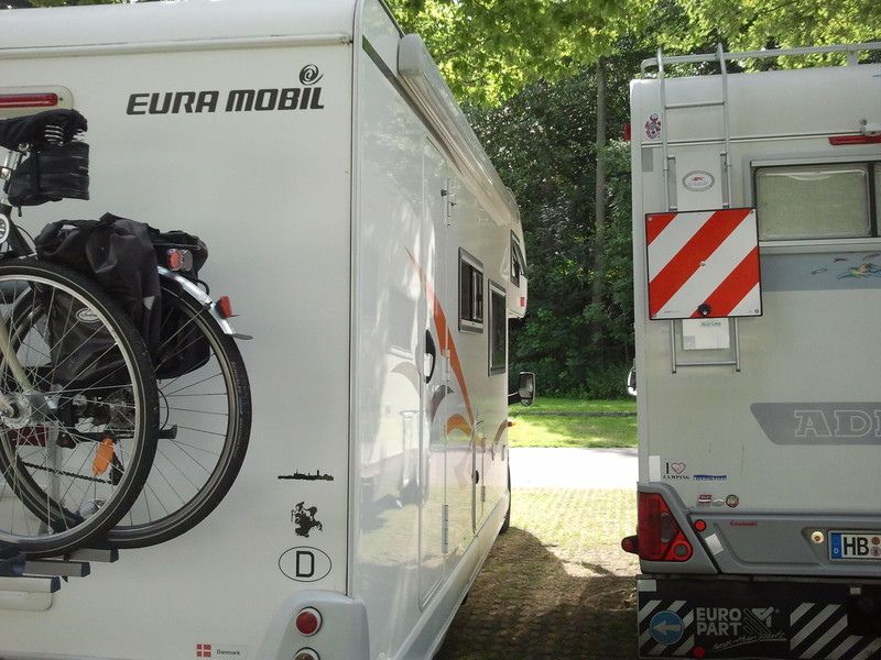Das ist meine einzige Priorität. Alles andere hängt von den Umständen ab. Z. B. bei Hitze Schatten und bei Kälte Sonne. Mit Tür und Markise in die Sonne und nicht in der Nähe von Ver- und Entsorgung. Und wenns irgend geht mit der nötigen "Beinfreiheit", da ich keine kuschelnden Wohnmobile mag. Vor- oder Rückwärts kommt immer drauf an, da man aus manchen engen Ecken rückwärts besser als vorwärts rauskommt. so, dass wir ungestörten SAT-Empfang haben :razz: Möglichst in Fluchtrichtung. :haendereib: Ich glaube jetzt mit dem VI so, das mir jeder abends reingucken kann. Wir werden die Ambientebeleuchtung anschalten, nur noch in Unterwäsche durch das Mobil laufen und Dosenbier heben. Im Ernst wohl so, daß wir nach vorn die beste Aussicht haben. Wir werden es am Donnerstag am Dortmund/Ems Kanal mal versuchen die Schiffe an unserer Frontscheibe vorbeiziehen zu sehen. Meine Vorlieben gebe ich nicht einfach so preis ... :oops: Hier aber ein aktuelles Bild zu den Vorlieben der Italiener. Den Kuschelkamper hatte ich am letzten WE plötzlich neben mir - und dies wohlverstanden auf einem weitläufigen, nicht sonderlich stark belegten, CP! :eek: ![]() Immerhin : die Tür geht doch noch voll auf .. :D der italiener wollte halt schatten... 8) Das geht auch noch enger.. Als er seine Heckgarage aufmachte ist die Tür erstmal gegen unseren Wagen gedengelt. ![]()
