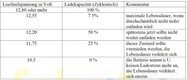 Seit Acki gelernt hat, dass man mit den Akkus etwas schonend umgehen muss, richtet er sich mit seinen AGMs nach folgender Tabelle: