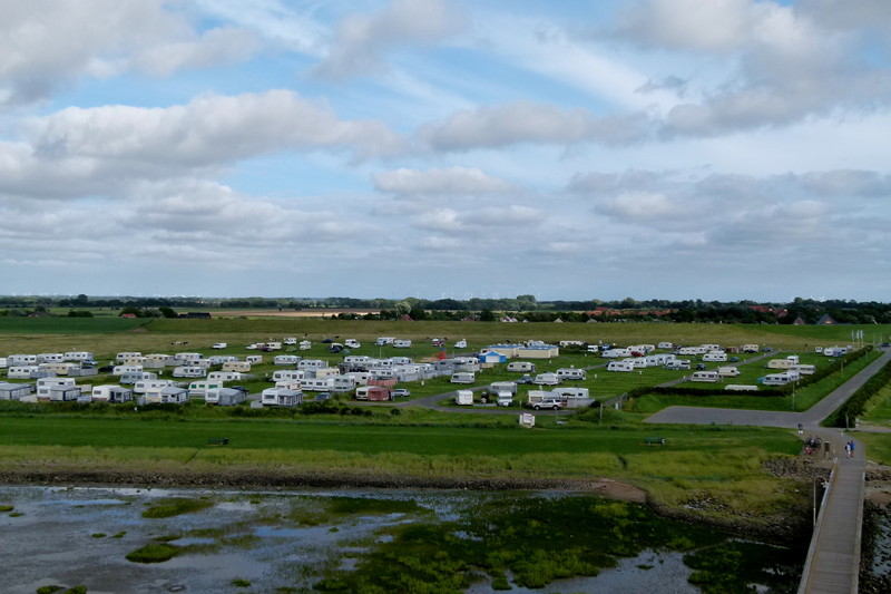 Vor dem Deich kann man auch den großen Campingplatz nutzen, er liegt direkt an der Nordsee und ist in den Sommermonaten nutzbar.