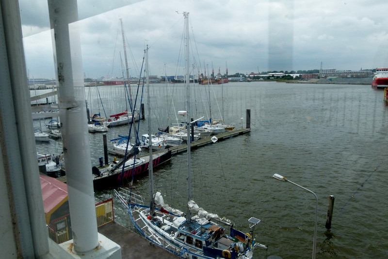Hoch überm Hafen geht man durch die Ausstellung mir einem guten Blick auf die vorbeifahrenden Schiffe