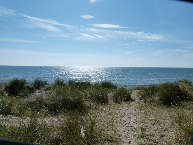Es geht an der Ostseeseite entlang. Die Lanschaft verändert sich Augenblicklich. Keine Dünen, schmalere Strände, ein wenig wie im Meckpom. Die Vegetation reicht teilweise bis ans Wasser, steilere Küsten, es wird grüner, Wiesen voller Wildblumen und der Baumbestand ist artenreicher.