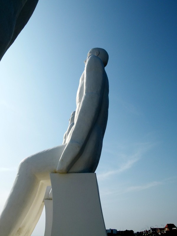 Skulptur "Der Mensch am Meer" aus weißem Beton, hergestellt von Bildhauer, Maler und Grafiker Svend Wiig Hansen.