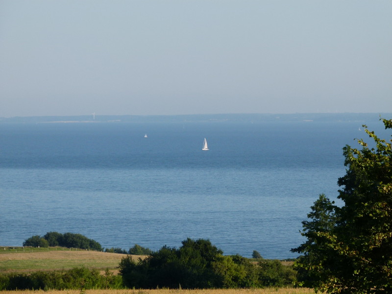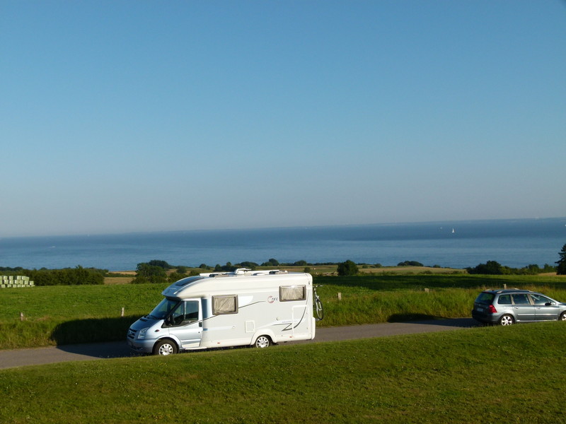 Die Landschaft wird hügeliger, aber nach wie vor dünn besiedelt. Übrigens, die Straßen in Dänemark, auch die kleinen Küstenstraßen sind durchweg gut ausgebaut und mit dem Mobil zu befahren. Ausweichbereiche sind eingeplant und die Dänen fahren sehr rücksichtsvoll.