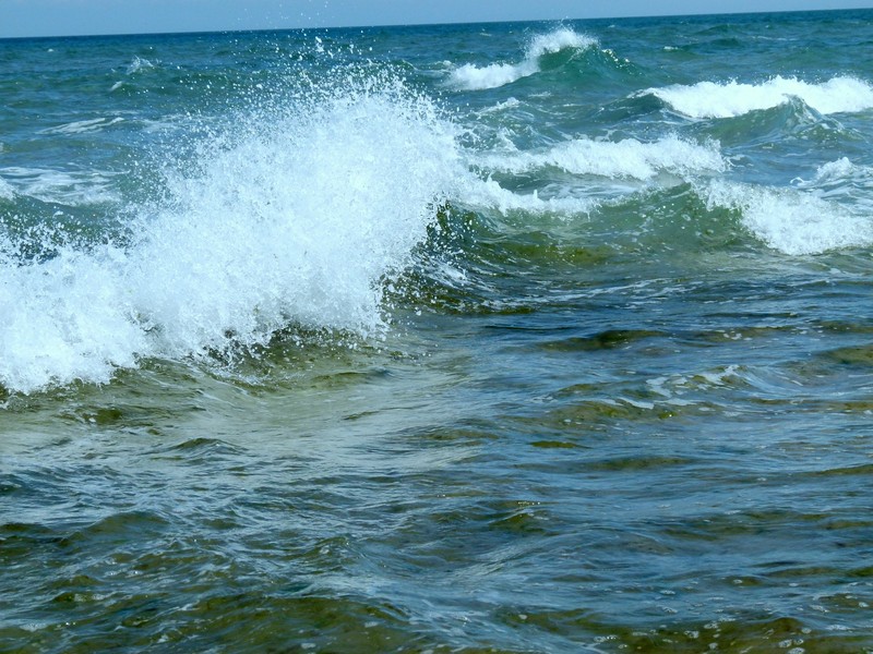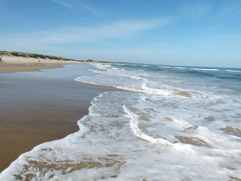 Ein traumhaft schöner Sommertag und hohen Wellen. Leider darf man hier schon nicht mehr baden, wegen der starken Strömung.