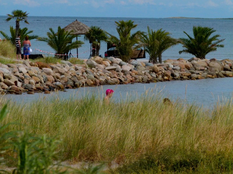 Das Wasser war herrlich warm, aber selbst bei geringer Wassertiefe mußte man dem Sog mit viel Kraft entgegenhalten.