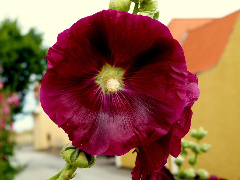 Stockrosen an fast jedem Haus und in den gepflegten Gärten