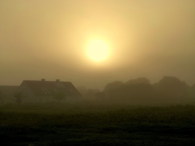 dichter Nebel :!: Die Luft ist warm, fast wie in einer Sauna. Hohe Luftthemperatur und das Atmen fällt schwer.