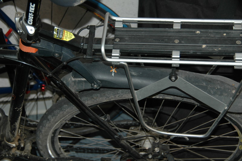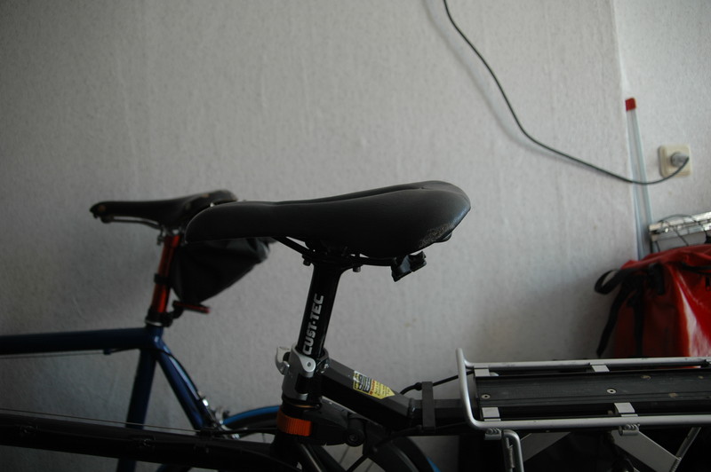 Ich meinte den Tracker versteckt als Diebstahlschutz um das Bike wieder zu finden. Ahhh...ok...Missverständnis :wink: Zuminest schauen die Bikes echt gut aus :top: Speedlifter sind toll. Die haben wir bei unseren von Kalkhoff serienmäßig bekommen. Sind die Kompakt-Räder (andere sagen, Kinderräder). Hallo raidy! Für Dein Rad gäbe es ja eine Möglichkeit, einen Gepäckträger mit Klemmung an der Sattelstüze zu befestigen ![]() Der Träger ist bis 10 kg belastbar. Ich nutze ihn mit zwei Ortlieb Front-Taschen um darin dann Regen-Klamotten und "Kniften"= geschnierte Schnitten, Obst usw. für Picknick-Pausen zu transportieren. ![]() Fotos nicht so genau betrachten, unsere Räder werden täglich gebraucht, sind daher etwas staubig. Haben zwar keinen Motor, aber auf jeden Fall Magura Scheibenbremsen, auf die ich nie wieder verzichten mag. Zu Deiner Aussage wg. der Bremsen: Dass Du von den hydraulschen Scheibenbremsen begeistert bist, kann ich nachvollziehen. Aber die Bremsen am Flyer sind doch sogenannte Rollenbremsen, d.h., einfach gesagt, vergleichbar mit einem normalen Rücktritt. Zudem werden die nicht hydraulisch, sondern über Bremszug betätigt. Meine Erfahrung mit diesem Bremsentyp: die werden doch bekanntermaßen nach langen Bergabfahrten ziemlich warm, um nicht zu sagen heiß. Da sollte man schon einmal ein gewisses Bremsenfading einkalkulieren. Aber üblicherweise fahren unsere Herzdamen ja nicht ganz so schnell. :) Jahrelanges schrauben an Fahrrädern als Freundschaftshilfe im Radladen meines Freundes haben mir da so gewisse Erfahrungen ermöglicht.