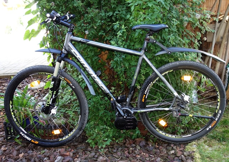 Seit wenige Stunden sind wir nun auch e-biker. Für mich gab es ein deutsches (ist Bayern auch Deutschland? 8) ) corratec Cross E-Bike --> Link . Es ist ein Gelände-gängiges Cross-Bike mit Bosch Mittelmotor und 22kg, für Raidyne ein schweizer E-Bike Flyer M-C8 deluxe mit Panasonic Mittelmotor und 25kg. Leider hat es für mich heute nur für eine 20km Testfahrt gereicht, doch hat mich die Bergsteigerfähigkeit auf Anhieb begeistert. Auf der Abfahrt quer durch den Wald habe ich es doch tatsächlich geschafft, das E-Bike in einer "Quer durch den Matsch" Tour zu versauen. :lach: Morgen ist Raidyne dran. Aber 52km/h Bergab hat es locker weg gesteckt und 30km/h freihändig klappte auch schon gut. Das liegt wohl daran, dass man die Federung der Vordergabel mittels Hebel abschalten kann. Morgen kommt der erste echte Test. Tolles Rad, allzeit gute Fahrt und ein voller Akku :-) Hallo raidy, herrlichen Glückwunsch zum Twentyniner-Hardtail. Habe mir im Frühjahr das Haibike eQ Xduro RC 29, also ein ähnliches Pedelec gekauft und bin jetzt, nach über 2400km, immer noch begeistert. Im Sommer waren wir in den Bergen und es hat richtig Spaß gemacht die Steigungen zu überwinden. Auch mit der Akku-Kapazität komme ich sehr gut zurecht. Ein einziges mal habe ich bis jetzt den Akku komplett leer gefahren. Das war auf einer Bergtour vom Stellplatz am Wank in Garmisch-Partenkirchen zum Königshaus am Schachen hinauf auf 1866m, wo ich über längere Strecken die maximale Unterstützung ausgenutzt habe. --> Link ![]() Genauso viel Spaß mit den neuen Pedelecs wünscht euch Michael Viel Spaß mit den neuen Rädern und werdet nicht übermütig. :D ;D Ach du liebes Lottchen :eek: na, da bin ich aber jespannt wie ein Flitztebogen, was für technische Raffinessen DU da wieder dranbastelst !!!!!!!!!! :D * elektronisches (blöde Bemerkung...ist ja sowiso allet elektronisch...lass ich einfach wech!) * automatische Verbing zum ADFC - Pannendienst, falls Akku und Puste alle oder Platten via Satellitentelefon * Hochfrequez-Diebstahl-Schutz durch : "Was auf die Glocke geben bis die Ohren platzen mit 350 dezibel" * GPS gesteuerte Überwachung mit möglichkeit über den NSA - Server die tagesaktuellen Kurvenneigungen und Kalorienverbräuche abzurufen * CPU unterstützte Aufzeichnung aller Verkehrssituationen mit dem Beweiss: nicht alle Oldies sind Raser ! über weitere Vorschläge für Euch freut sich Dein Stefan 8) Das mit dem GPS-Tracker scheint mir sogar sinnvoll. Weitere Ideen bitte! :lach: Manno, wäre nur schon morgen früh. :?
