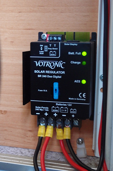 Kurz zur Situation. Wir haben einen Knaus Sport Traveller 500 (Fiat Duc 2.3 JTD, Bj. 2003) und die Aufbaubatterien waren bisher Blei-Säure-Batterien Bosch Deep Cycle L5 Technology 75Ah mit Abgasschlauch nach unten weg. Auf dem Dach haben wir zwei Solarpanels und hinter dem Fahrersitz den Votronic Solar Regulator SR 240 Duo Digital mit 240 wP und 15 A. Er hat einen Umschalter von Säure/Blei zu Gel.