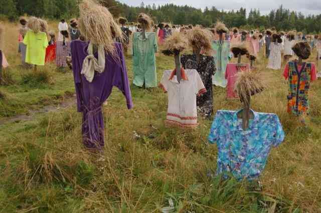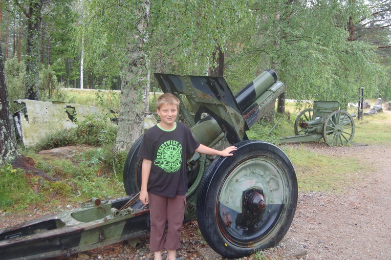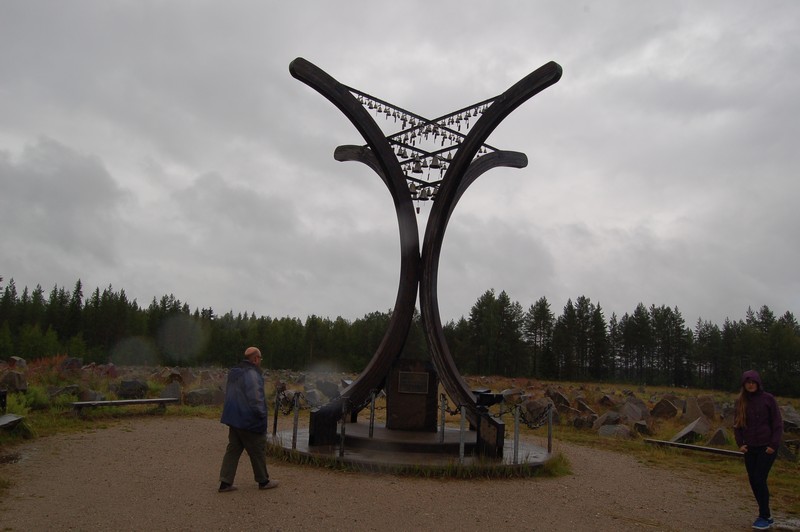 Wir fahren weiter Richtung Norden, zunächst aber tanken wir in Lieksa Diesel und Wasser. Zwischenstopp ist das Winterkriegsdenkmal mit Museum in Suomussalmi. Wir besichtigen die Kanonen und den Panzer. Das kleine Museum ist uns mit 7,50 Euro je Person zu teuer. Während der Besichtigung regnet es immer mal wieder in heftigen Strömen Von hier fahren wir ca. 30km weiter zum stillen Volk, einer Kunstinstallation Das stille Volk