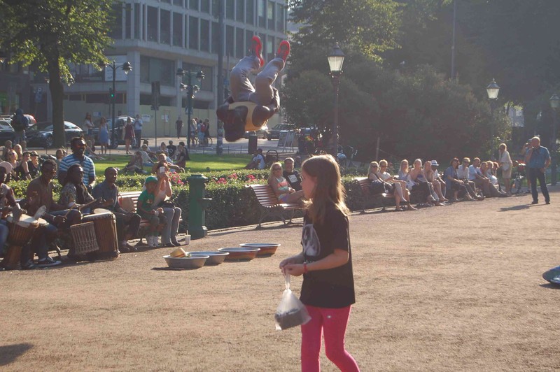 Freitag, 9.8.13 Birgit wird verletzt, die Kinder als Nazis beschimpft Blick vom Olypiastadionsturm auf Helsinki Ein Gaukler macht Luftsprünge
