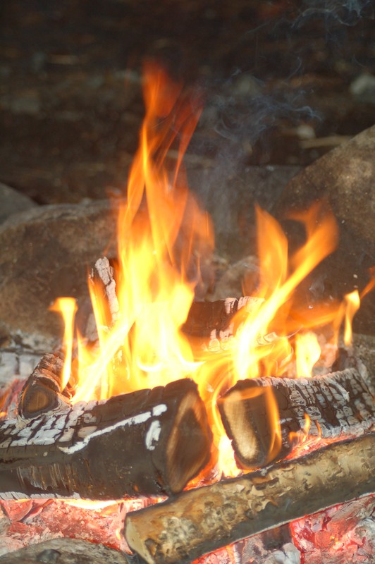 Am Abend sitzen wir vor Klaus Womo unter der Markise und schauen ins Lagerfeuer. Nachtrag: Rückblickend kann man sagen, dass dies einer der schönsten Stellplätze war
