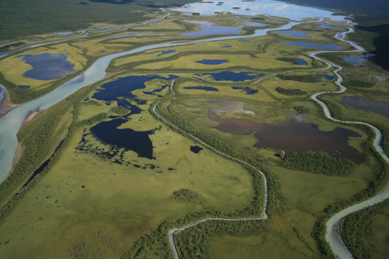 Wir bekamen Information über die verschiedenen Färbungen des Wassers, der Kungsleden wurde überflogen, wir sahen sogar einige Wanderer.